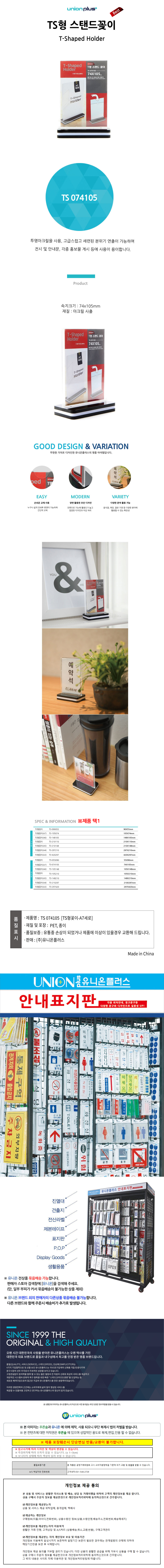 아크릴메뉴판 TS형 스텐드 꽂이 74x105mm (A7세로)