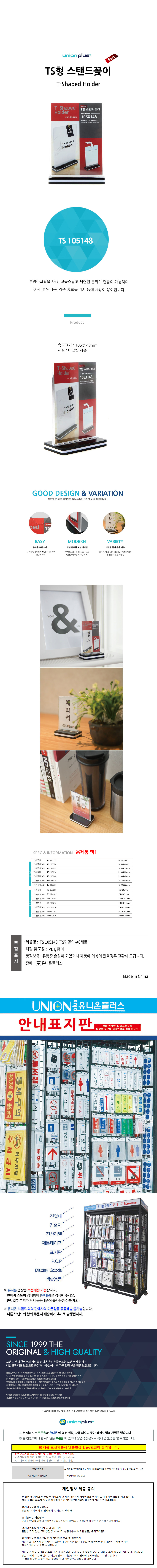 아크릴메뉴판 TS형 스텐드 꽂이 105x148mm (A6세로)