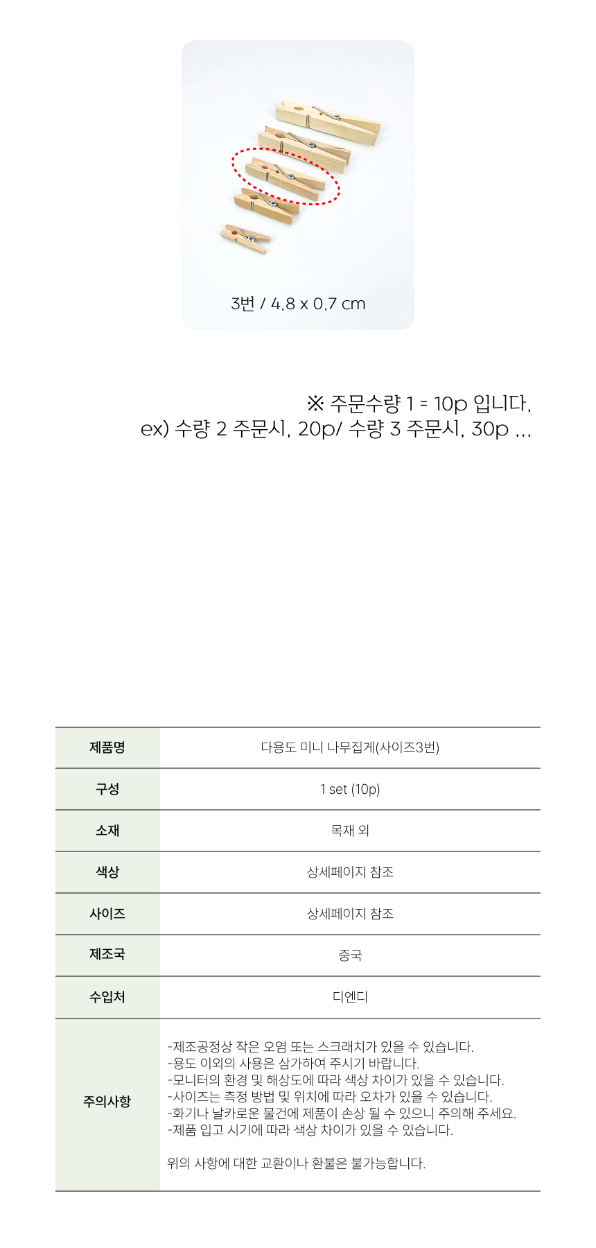 차량 사진꾸미기 다용도 미니 나무집게 10P (3번)
