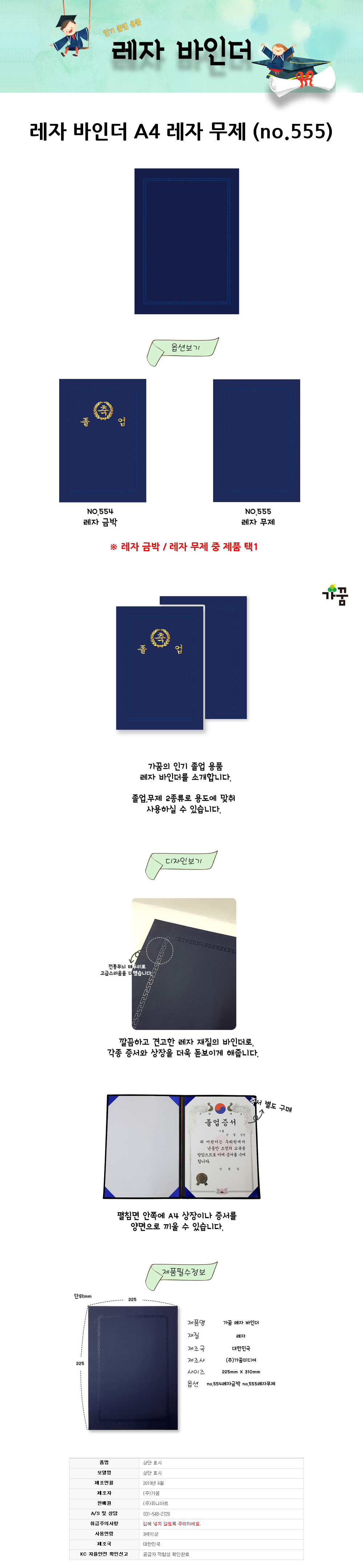 가꿈 3300 레자 바인더 A4 레자 무제 no.555