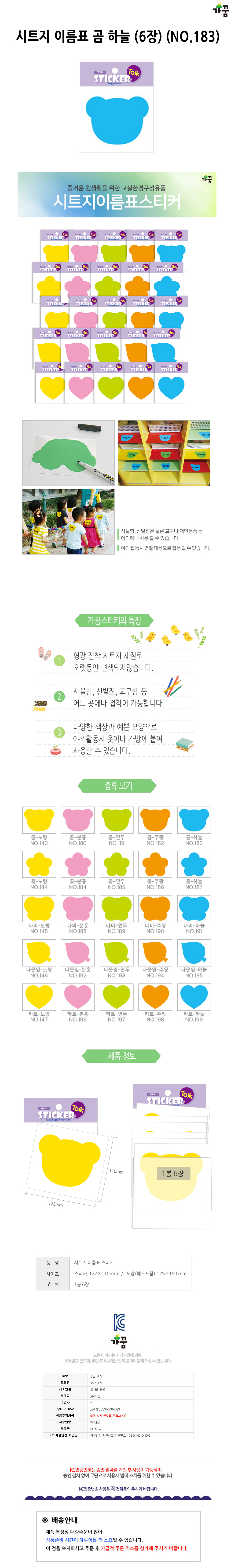가꿈 1600 시트지 이름표 곰 하늘 6장 NO.183