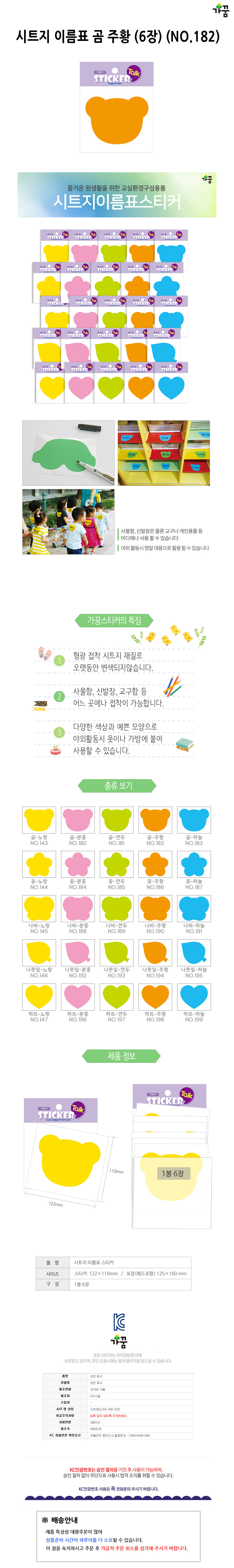 가꿈 1600 시트지 이름표 곰 주황 6장 NO.182