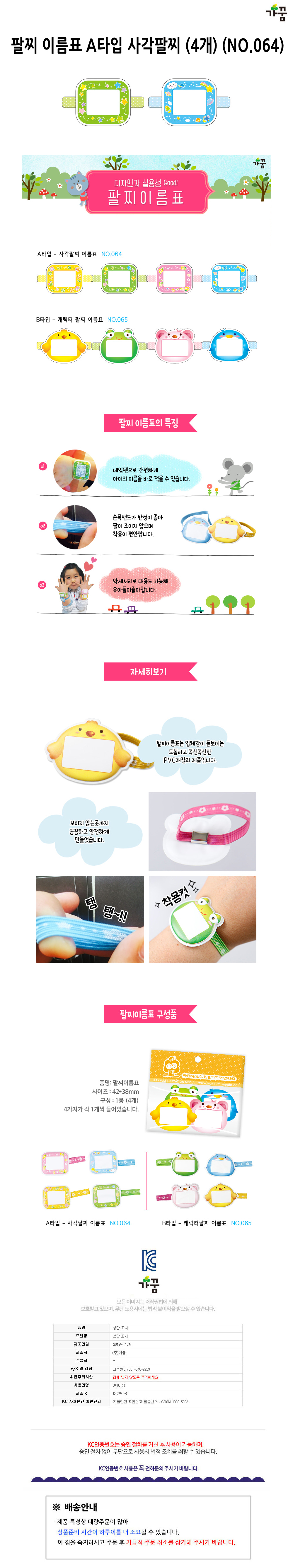 가꿈 3200 팔찌 이름표 A타입 사각팔찌 4개입 NO.064