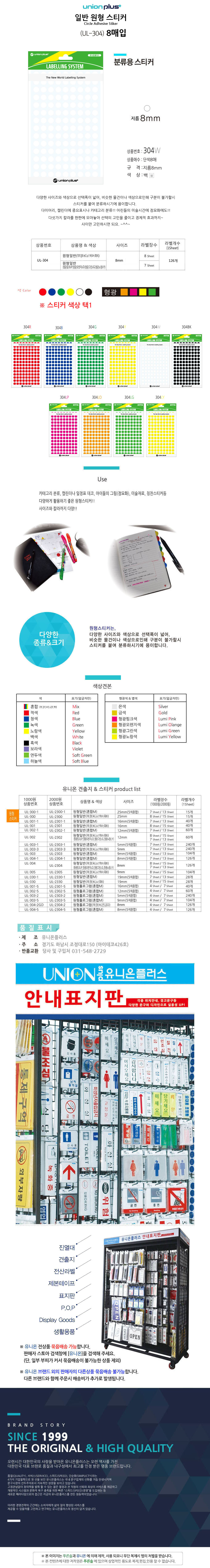유니온 스티커 원형 단색 지름8mm 8매입 백색 UL-304W
