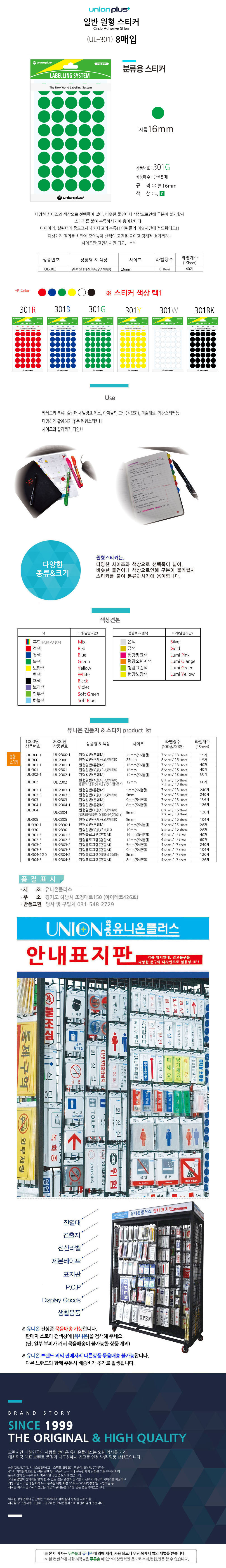 유니온 스티커 원형 단색 지름16mm 8매입 녹색 UL-301G