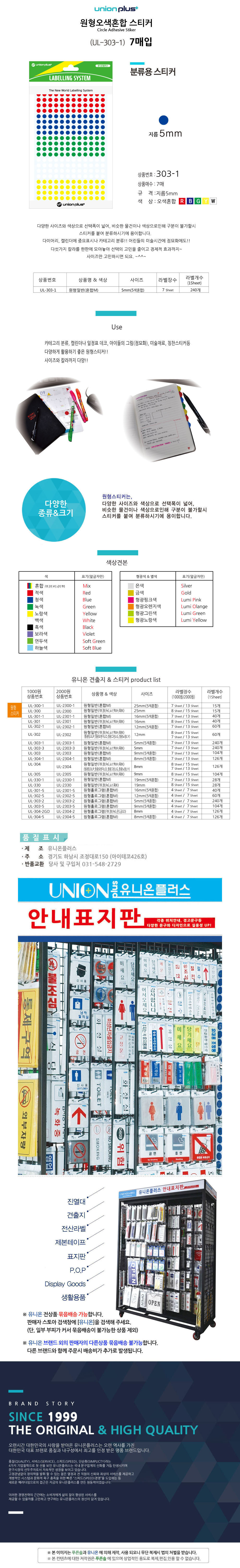 유니온 스티커 원형 5색혼합 지름5mm 7매입 UL-303-1