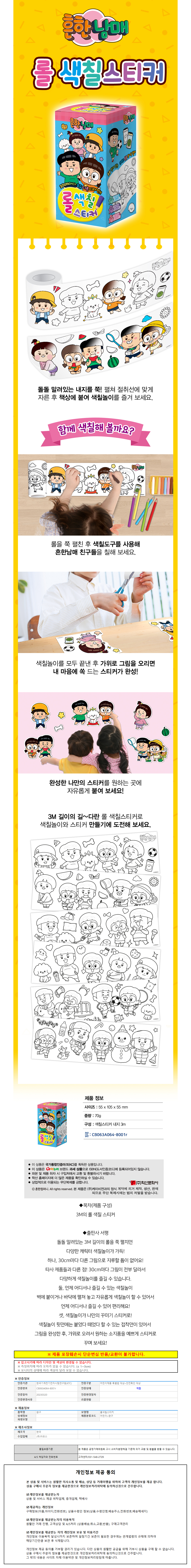 학산문화사 흔한남매 롤색칠 스티커