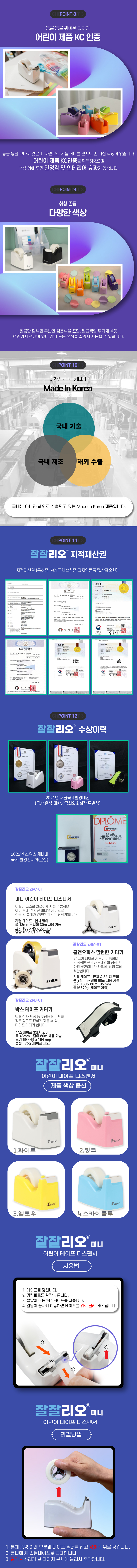 | 품명 및 모델명 | 잘잘리오 홈앤오피스 테이프 미니 디스펜서 안심 커터기 |