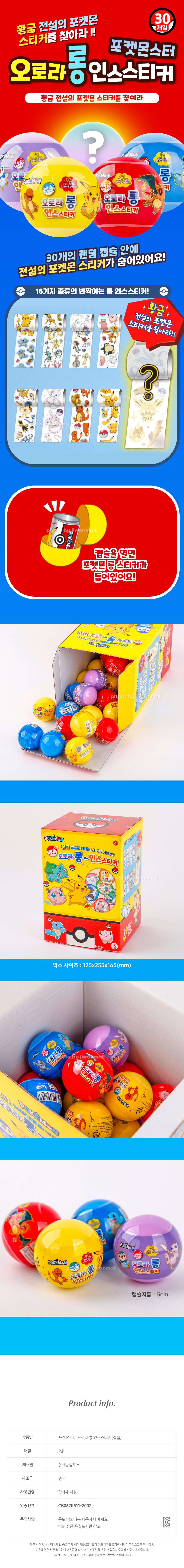 | 품명 및 모델명 | 포켓몬스터 오로라 롱 인스스티커(캡슐)-30EA |