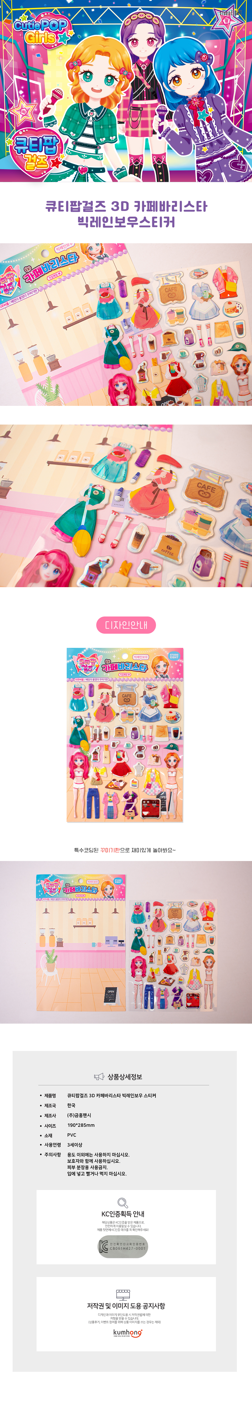 | 품명 및 모델명 | 큐티팝걸즈 카페바리스타 빅레인보우스티커 |