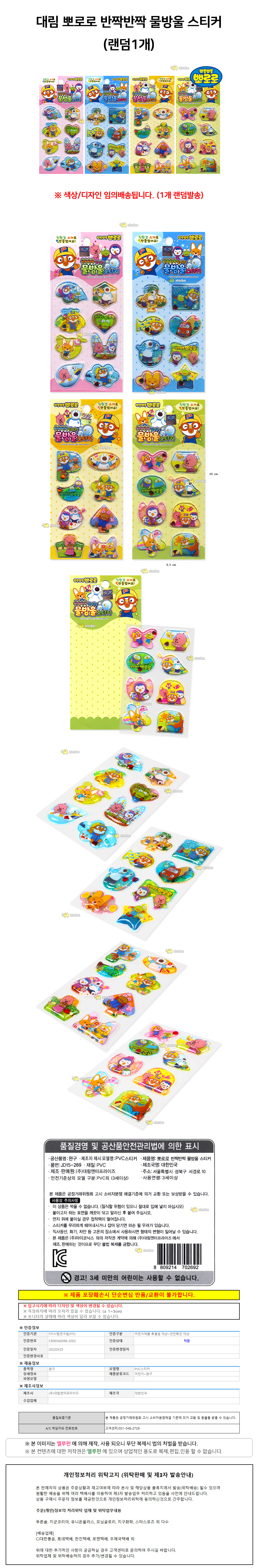 대림 뽀로로 반짝반짝 물방울 스티커 랜덤1개