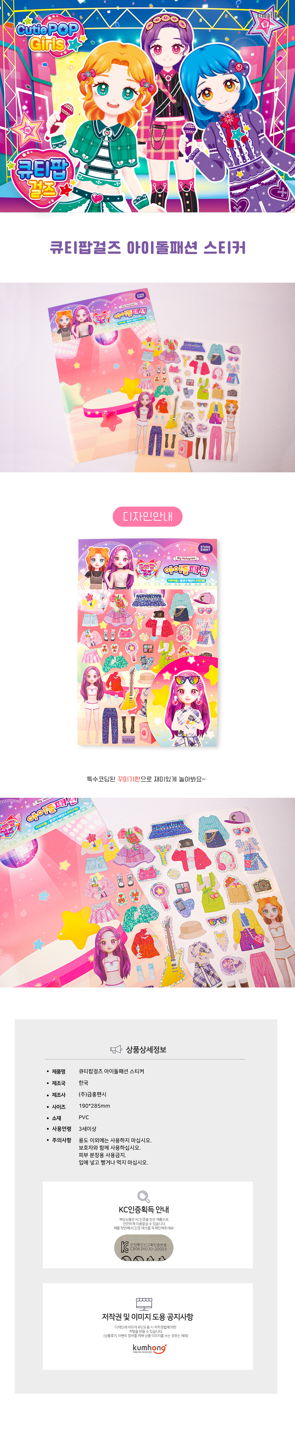 | 품명 및 모델명 | 큐티팝걸즈 빅홀로그램 스티커 아이돌패션 |