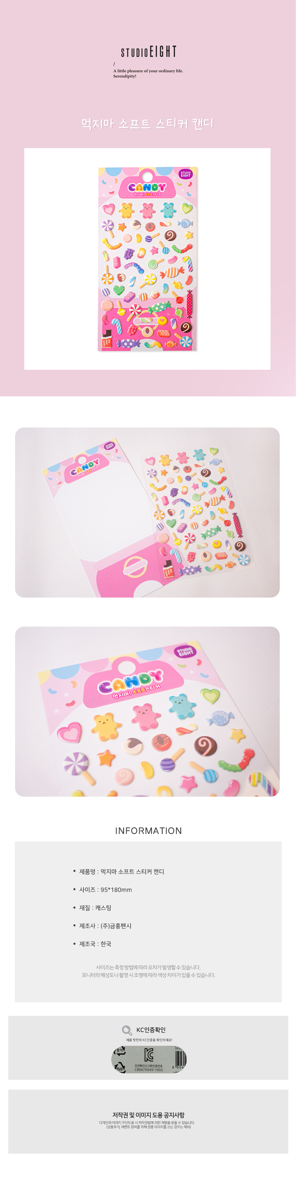 | 품명 및 모델명 | 스튜디오8 먹지마 소프트스티커 캔디 제작 다꾸 |