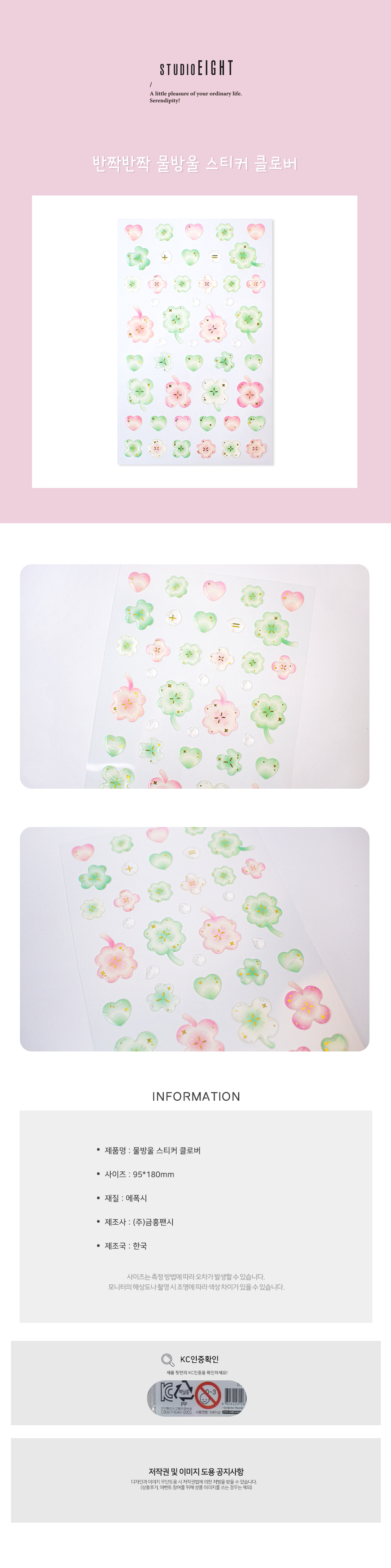| 품명 및 모델명 | 스튜디오8 반짝반짝 물방울 스티커 클로버 제작 다꾸 |