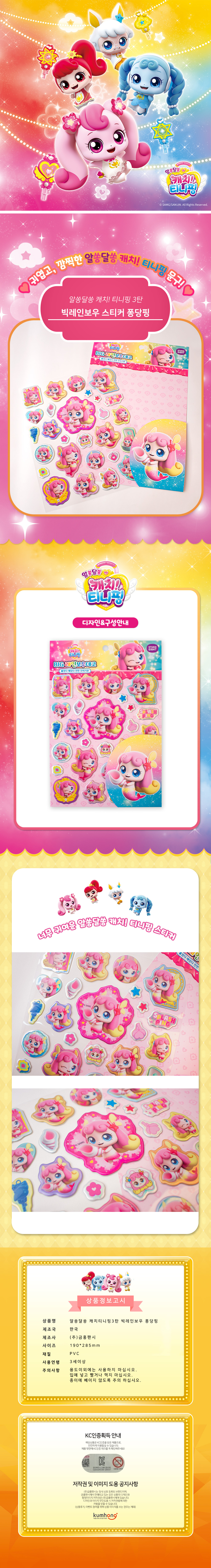| 품명 및 모델명 | 알쏭달쏭 캐치티니핑 빅레인보우 스티커 퐁당핑 |