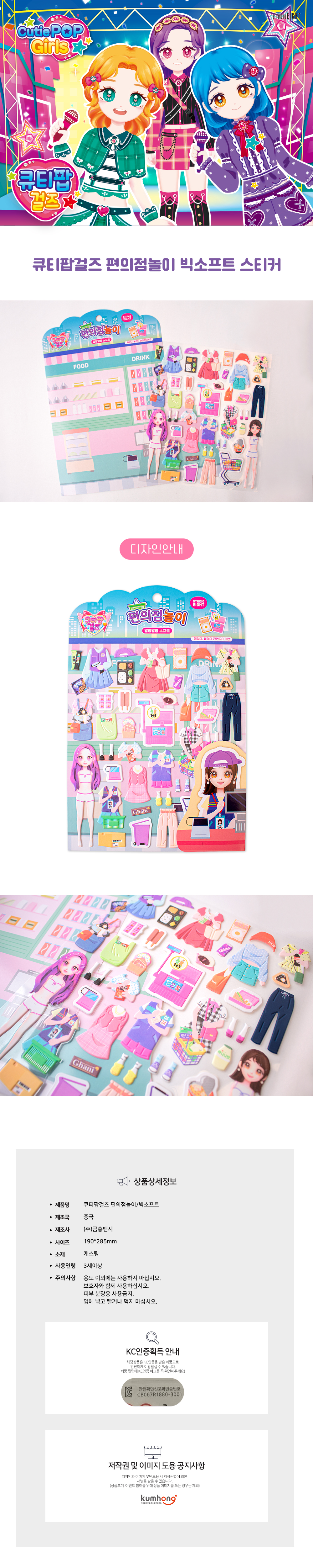 | 품명 및 모델명 | 큐티팝걸즈 편의점놀이 빅 소프트스티커 |