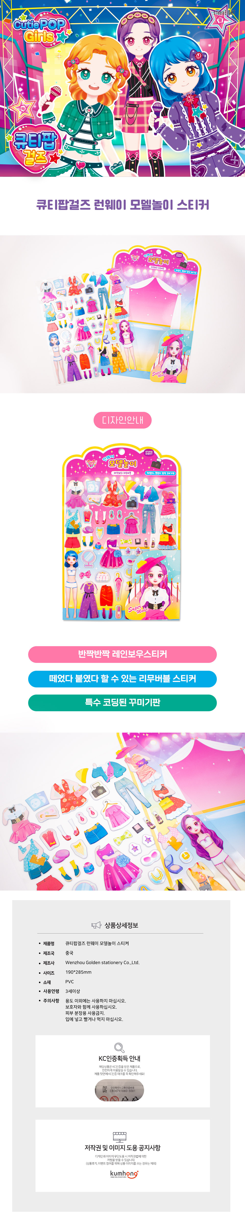 | 품명 및 모델명 | 큐티팝걸즈 런웨이 모델놀이 스티커 |