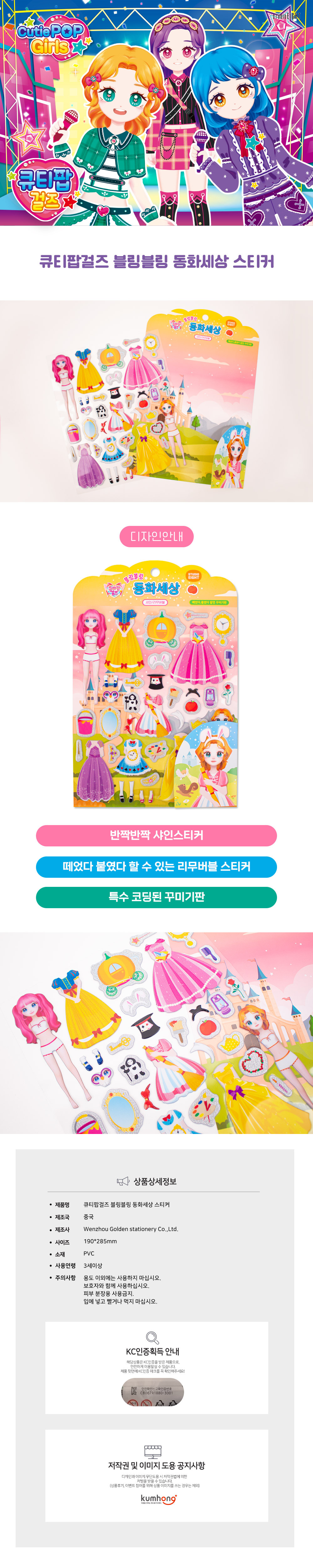 품명 및 모델명 큐티팝걸즈 블링블링 동화세상 스티커