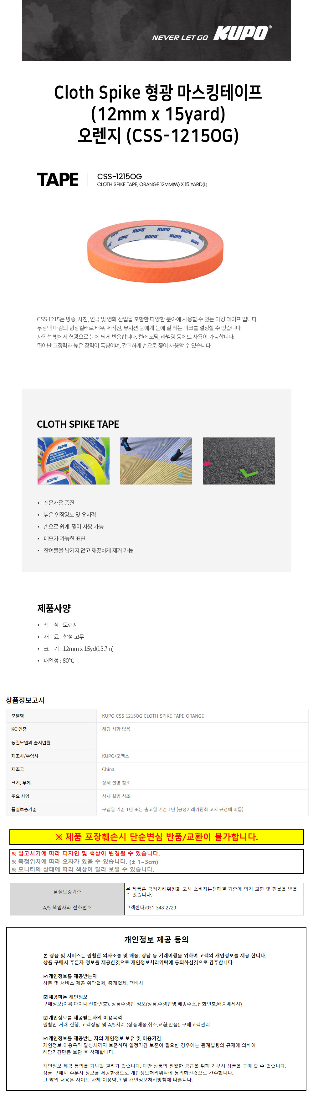 KUPO 마스킹테이프 형광 (12mmx15yard) (오렌지) (CSS-1215OG)