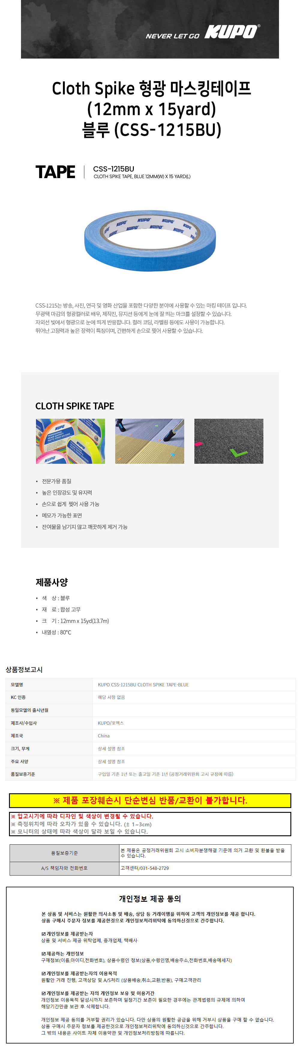 KUPO 마스킹테이프 형광 (12mmx15yard) (블루) (CSS-1215BU)