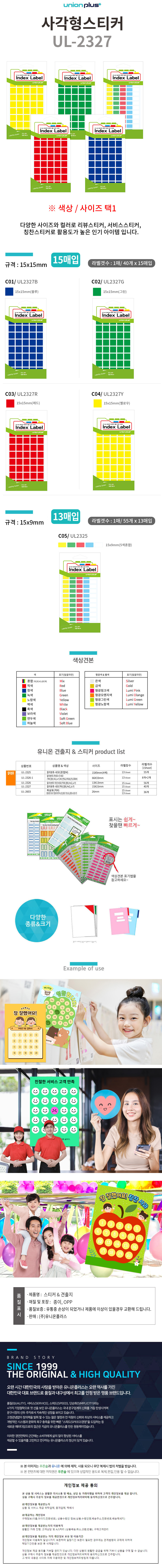 유니온 스티커 사각형스티커 컬러스티커 (UL2327) (택1)