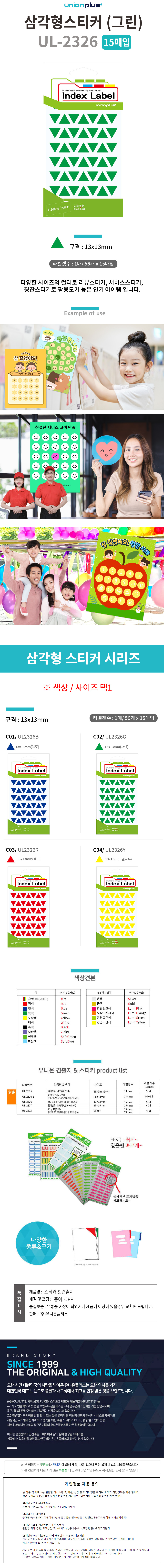 유니온 스티커 삼각형스티커 컬러스티커 13x13 (그린) (UL2326G) (15매입)