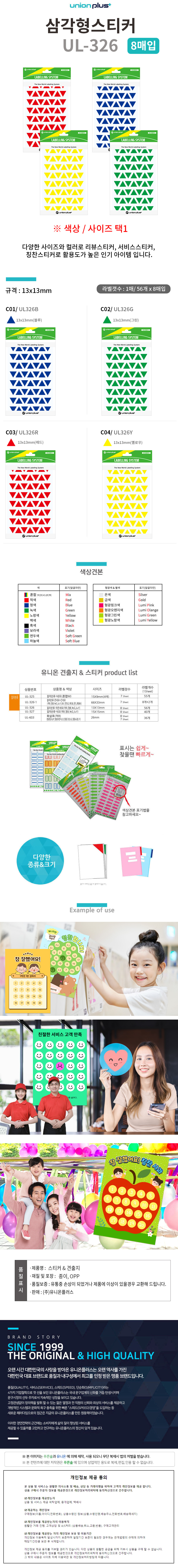 유니온 스티커 삼각형스티커 컬러스티커 13x13 (UL326) (8매입) (택1)