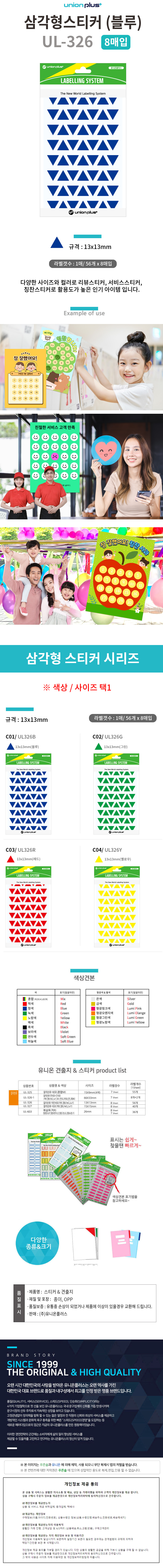 유니온 스티커 삼각형스티커 컬러스티커 13x13 (블루) (UL326B) (8매입)