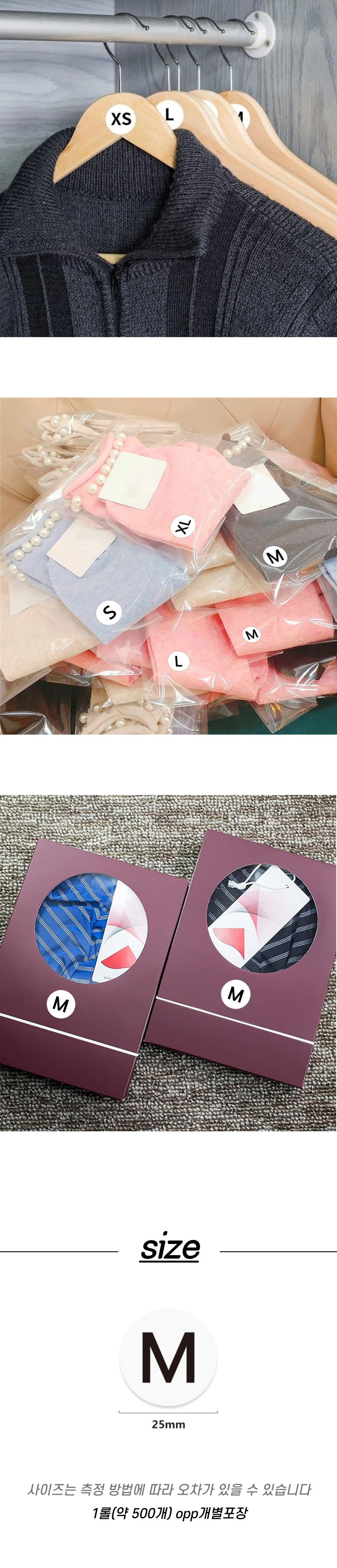 치수 라벨 스티커 M 사이즈 1롤(약500P)
