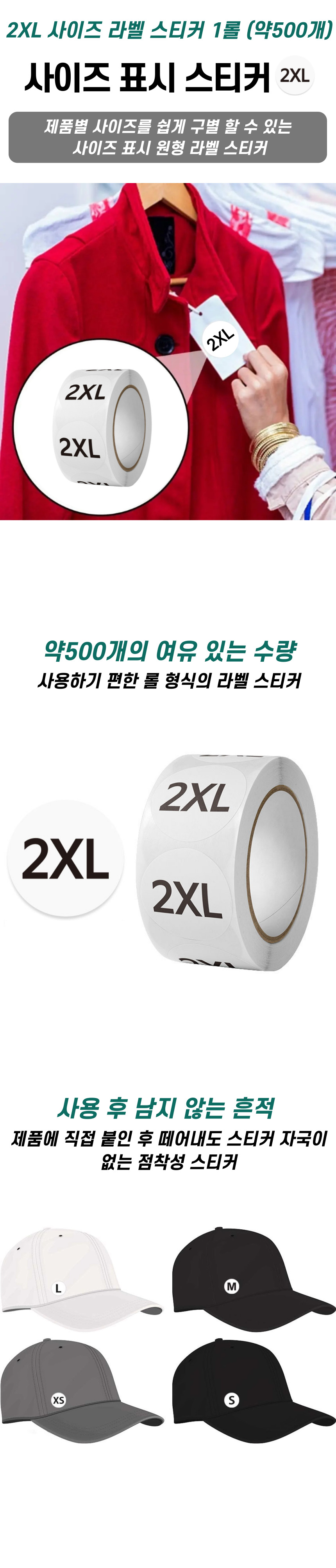 치수 라벨 스티커 2XL 사이즈 1롤(약500P)
