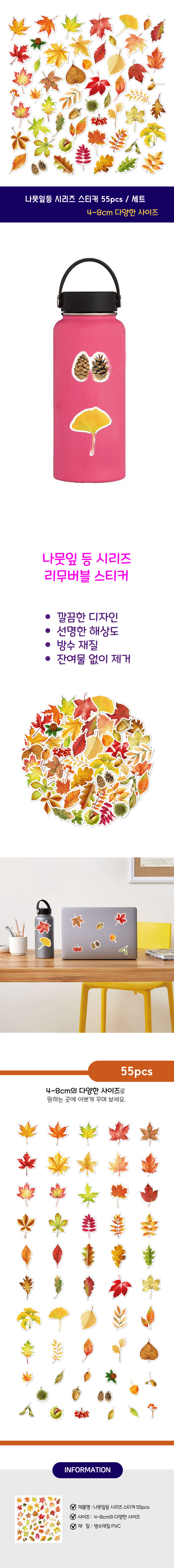나뭇잎 시리즈 방수 스티커 리무버블 꾸미기 55매 S-2189