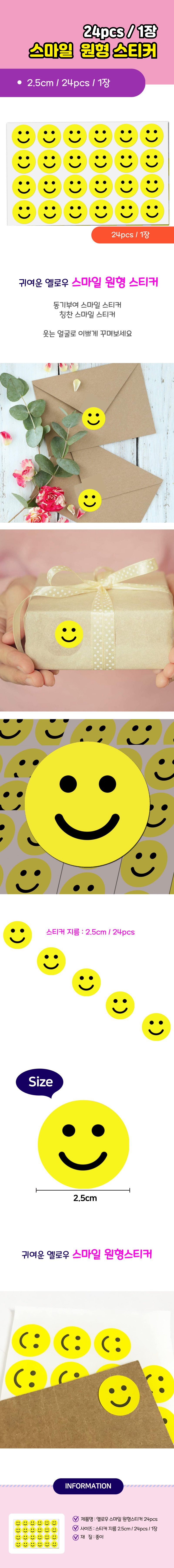 옐로우 스마일 원형 스티커 1장 24pcs 다꾸 칭찬 S-283
