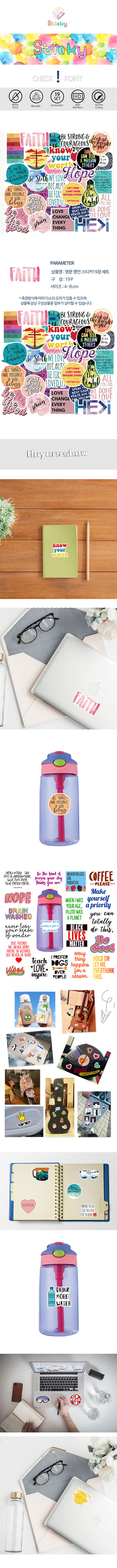 명언 힐링 노트북 물병 리유저블 캐리어 스티커 19p
