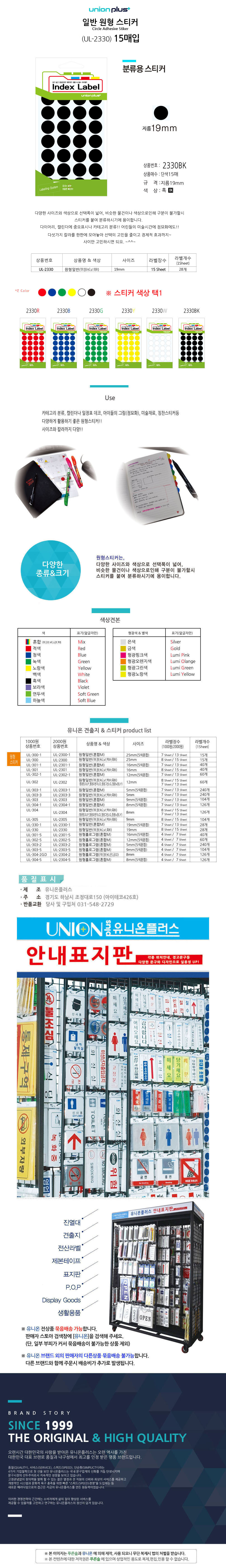 유니온 스티커 원형 단색 지름19mm 15매입 흑색 UL-2330K