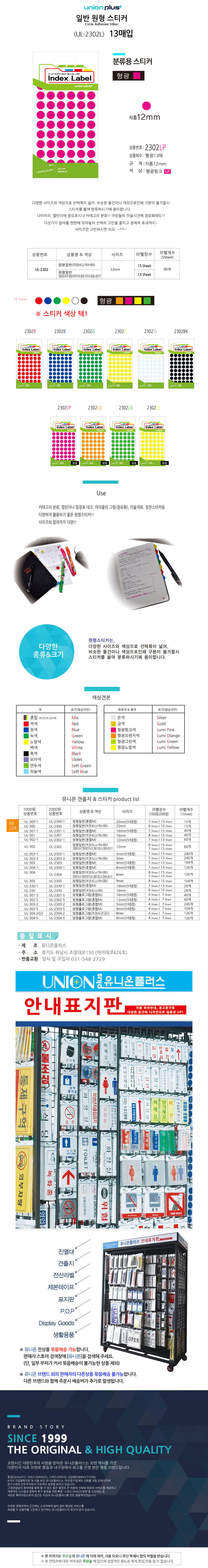 유니온 스티커 원형 단색 지름12mm 13매입 형광핑크 UL-2302LP