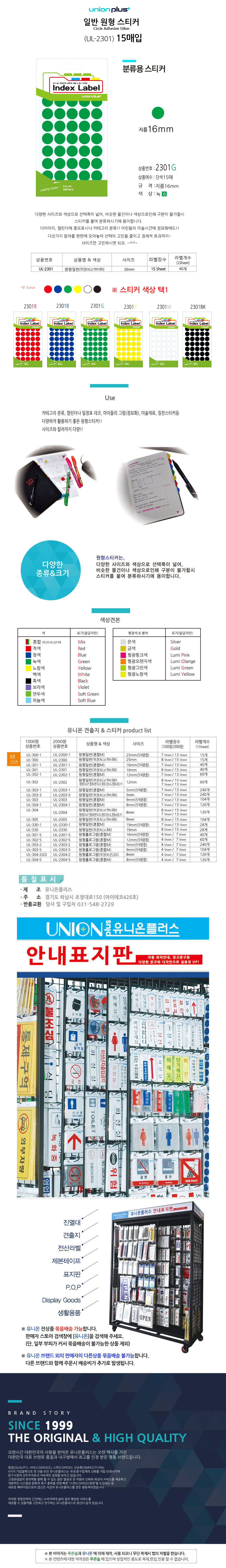 유니온 스티커 원형 단색 지름16mm 15매입 녹색 UL-2301G