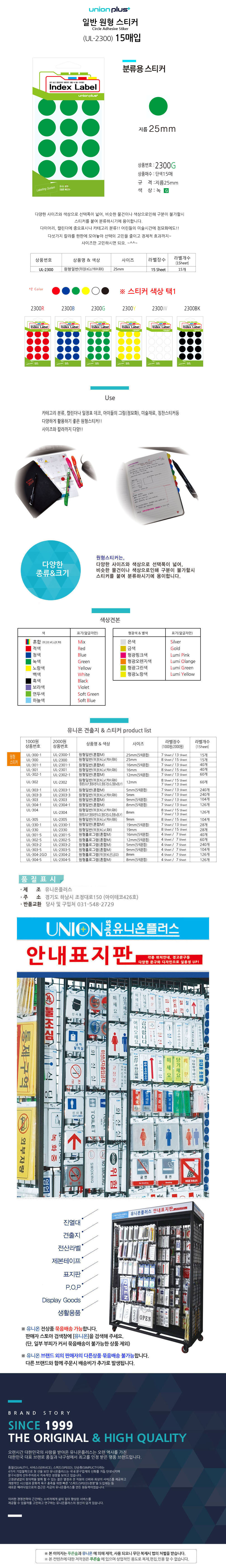 유니온 스티커 원형 단색 지름25mm 15매입 녹색 UL-2300G