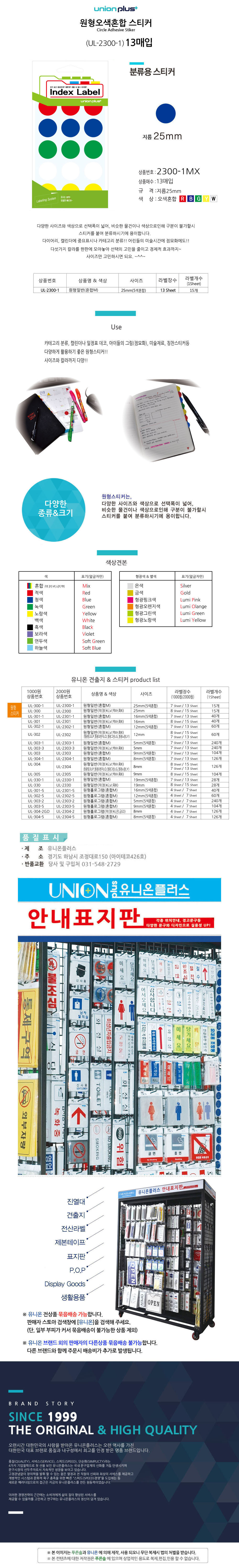 유니온 스티커 원형 5색혼합 지름25mm 13매입 UL-2300-1