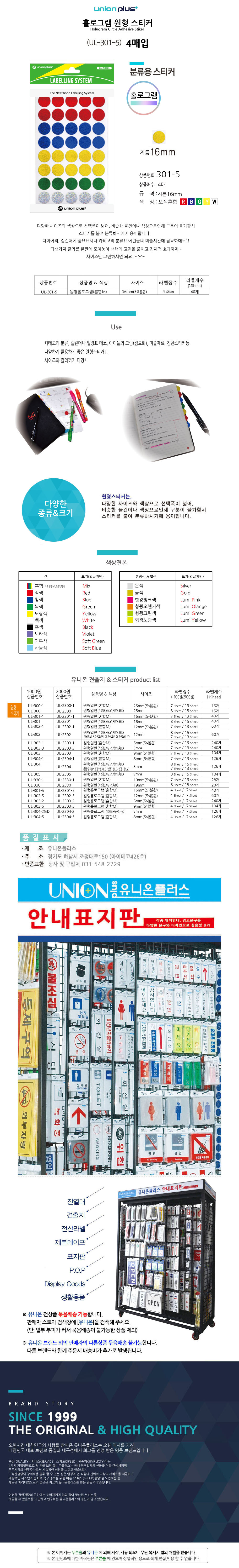 유니온 스티커 원형 홀로그램 5색혼합 지름16mm 4매입 UL-301-5