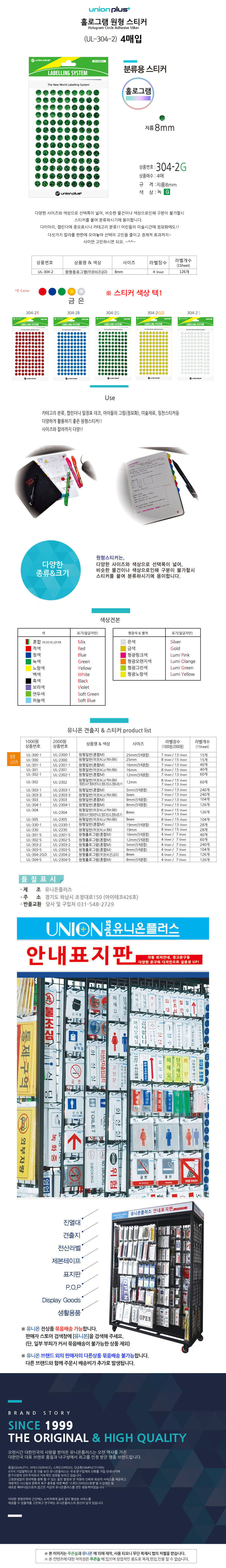 유니온 스티커 원형 홀로그램 단색 녹색 지름8mm 4매입 UL-304-2G