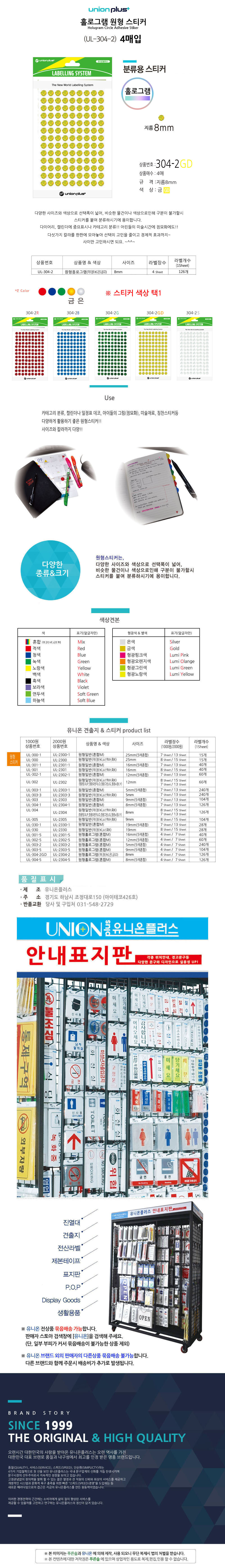 유니온 스티커 원형 홀로그램 단색 금색 지름8mm 4매입 UL-304-2GD