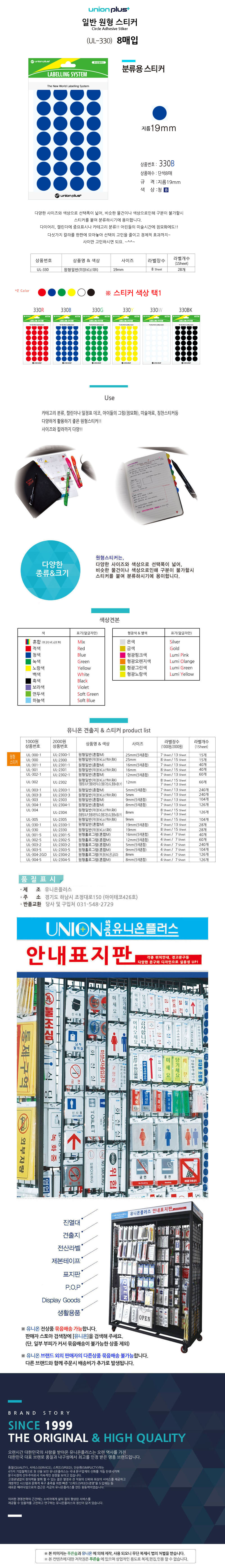 유니온 스티커 원형 단색 지름19mm 8매입 청색 UL-330B
