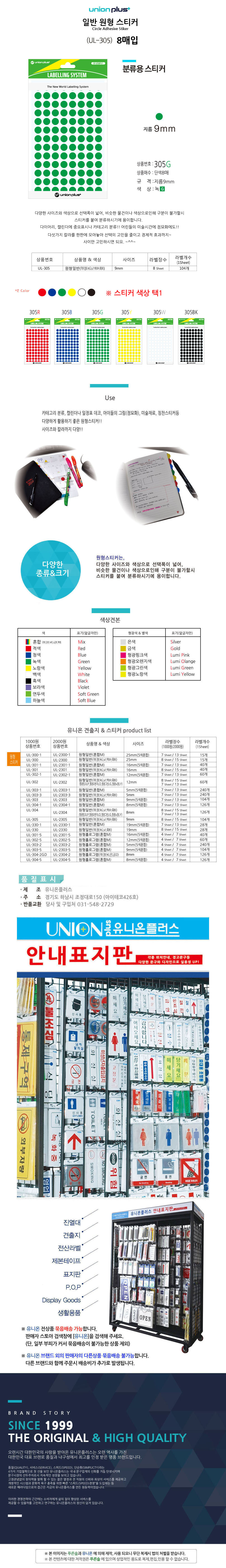 유니온 스티커 원형 단색 지름9mm 8매입 녹색 UL-305G