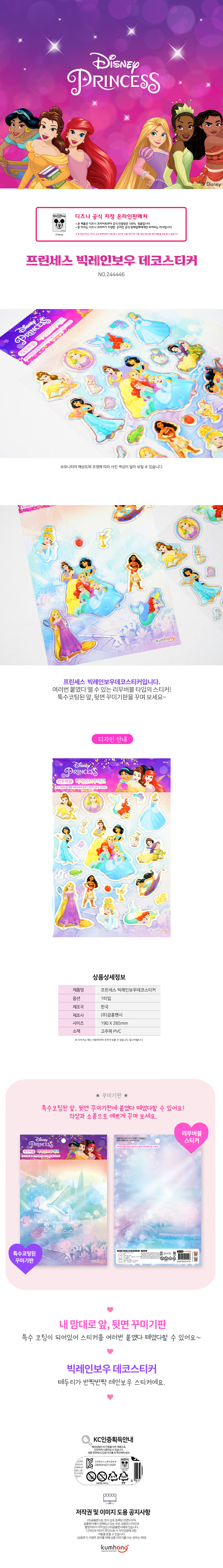 디즈니프린세스 리무버블 빅레인보우데코스티커/244446
