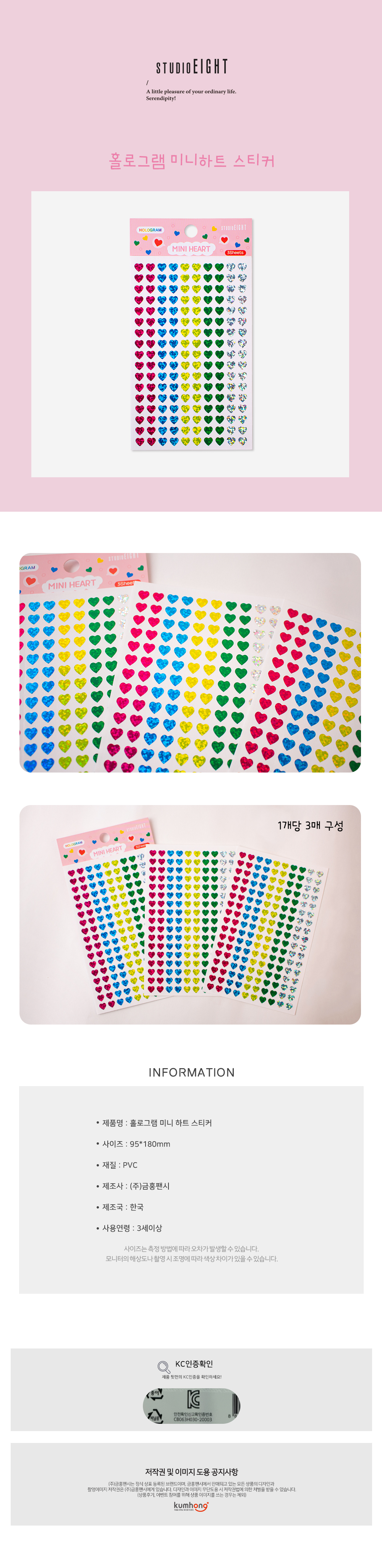 | 품명 및 모델명 | 스튜디오8 홀로그램 미니하트스티커 |