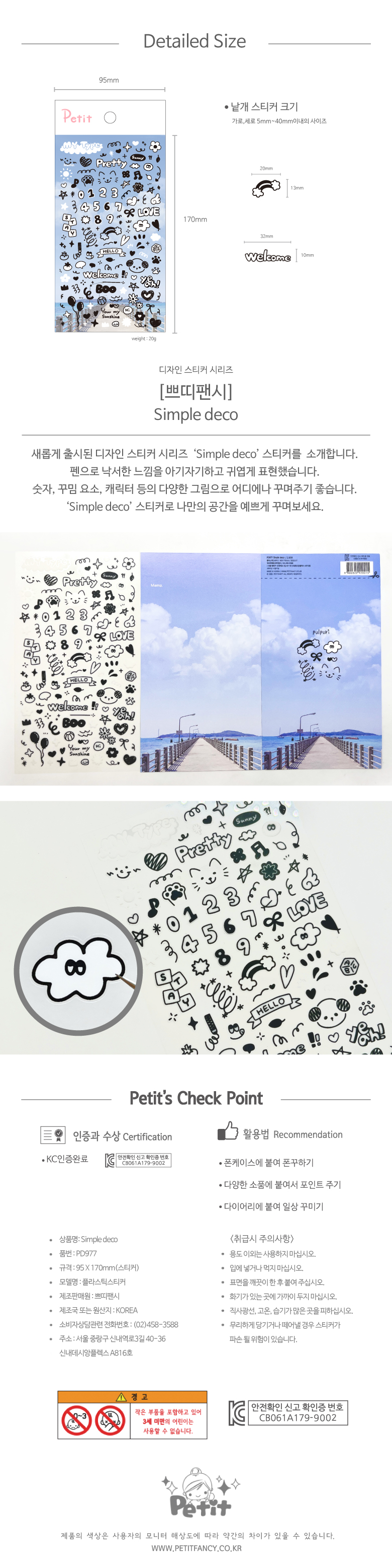 | 품명 및 모델명 | 스티커 PD977 Simple deco |