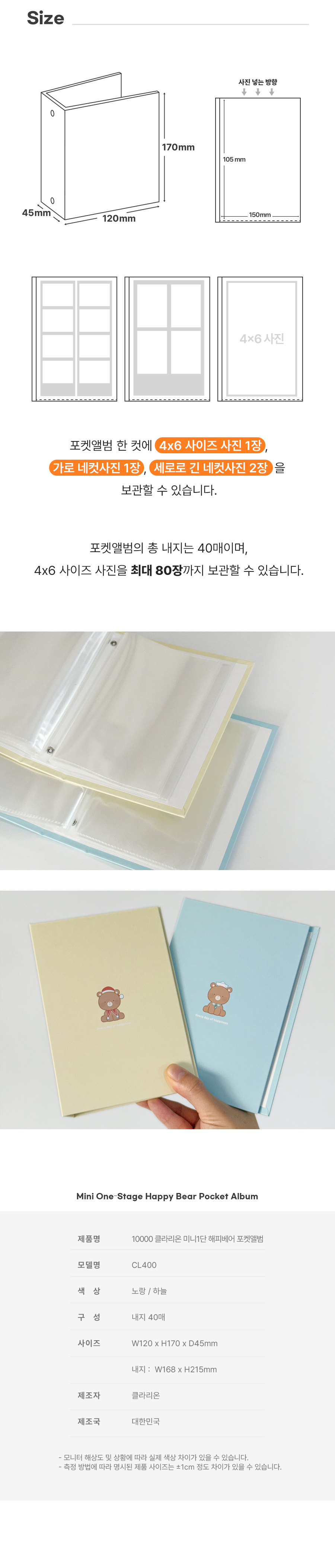 • 모델명클라리온 미니 1단 해피베어 포켓앨범...