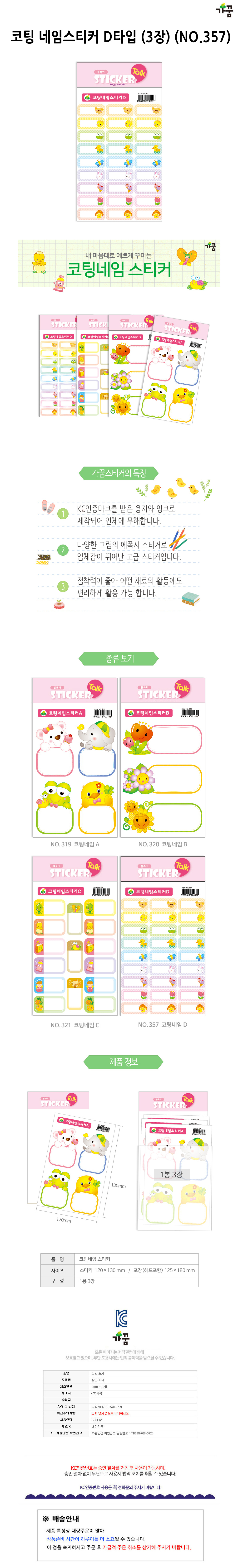 가꿈 1500 코팅 네임스티커 D타입 3장 NO.357