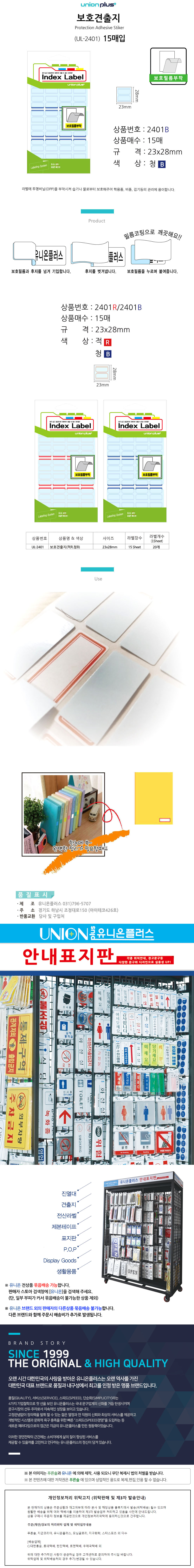 유니온 견출지 보호필름 23x28 (UL-2401) (청색) (15매입)