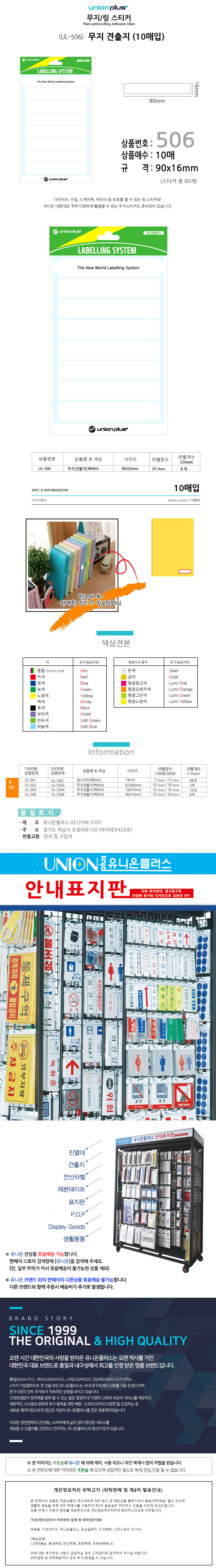 유니온 견출지 무지 90x16 UL-506 백색 10매입
